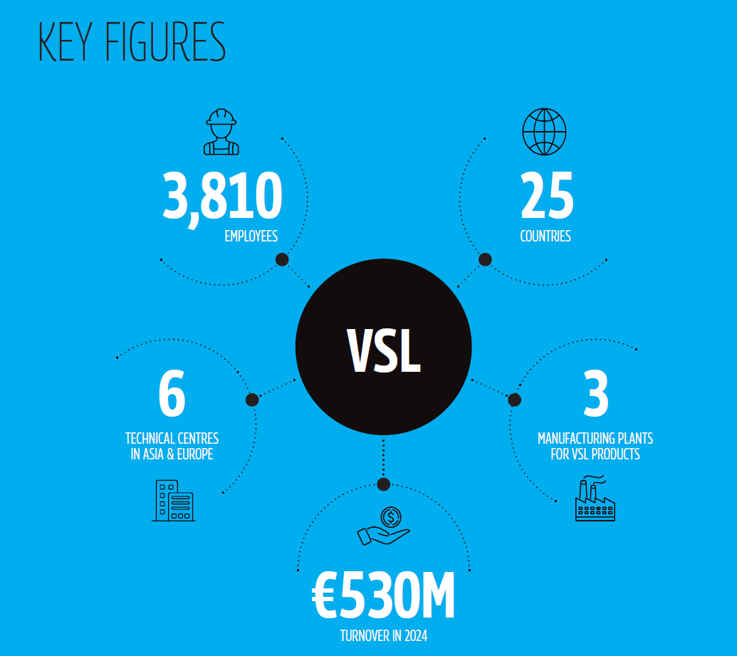 VSL is one of the two civil works subsidiaries of Bouygues Construction, a French global player in construction with a presence in more than 60 countries and 32,400 employees worldwide.