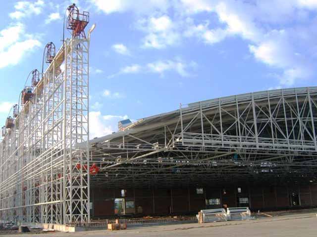 VSL lifted the roof structure of the largest aircraft service facility in Central Europe in only two days, lifting a total of 1,400t. The VSL specialist control system ensured the synchronisation of the lifting units, allowing for the avoidance of deformation of the structure.