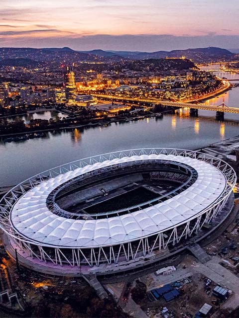 VSL carried out the lifting of the cable net roof of the Athletics Stadium Budapest to be delivered for the 2023 IAAF World Athletics Championships. VSL assisted on the engineering of the net roof structure’s erection method and assembled and installed the heavy lifting system including 85 tonnes of temporary strand cables to raise the permanent roof structure. VSL mobilised 192 jacks of various sizes to lift the cable net roof in two major lifting operations.