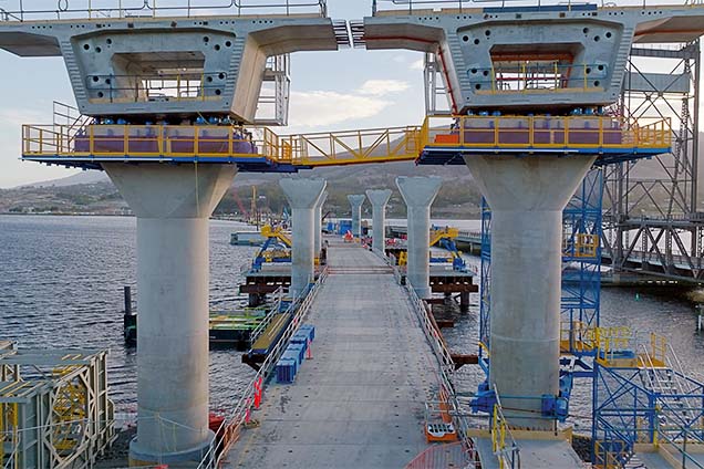 The 1.3-km Bridgewater Bridge, Tasmania’s largest infrastructure project, was delivered by VSL Australia and McConnell Dowell under an alliance contract. VSL designed and erected 1,082 match-cast precast segments, produced off site using a conjugate casting method ensuring millimetric accuracy during assembly. The teams also optimised material use, protected the River Derwent, and enabled reuse of modular temporary works.