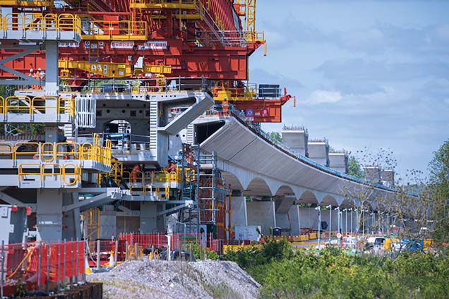 Part of the HS2 project, the 3.4 km Colne Valley Viaduct is one of the UK’s most significant rail structures. VSL UK delivered deck erection and post-tensioning using balanced cantilever construction, installing over 1,000 segments across 56 piers. To preserve slender aesthetics and durability, VSL introduced a new generation of external tendons, supplying 1,200 tonnes of external PT and 1,000 tonnes of PL3 electrically isolated internal tendons, enabling long-term performance and maintainability.