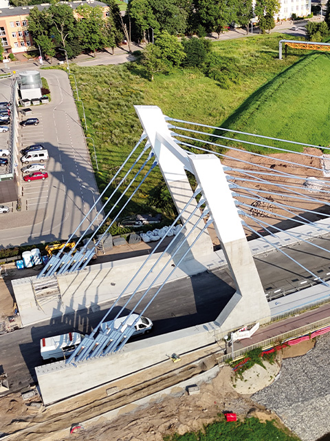 As part of the construction of a new cable-stayed bridge over the Kamienna River, VSL Poland was contracted to carry out a comprehensive scope of work, including supplying and installing the stay
