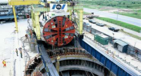 The largest tunnel boring machine used in Singapore’s Deep Sewer projects was lowered into a vertical shaft of 45m depth. VSL Heavy Lifting was awarded with a contract to supply, design and install a lowering and placement gantry system for the tunnel boring machine, weighing 420 tonnes.