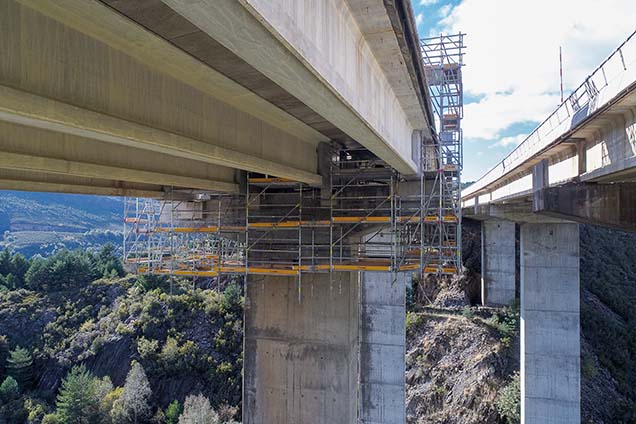 After slippage of some of the elastomeric bearings on the Requejo Viaduct, several deck girders were displaced onto the concrete mortar plinths and, ultimately, the bent of the deck slab, creating a 100-millimetre step in the asphalt. In response, the Spanish Ministry of Public Works launched an emergency contract, appointing VSL as the main contractor to inspect and repair the bridge, carry out bearing replacement, and restore it to a safe working condition.