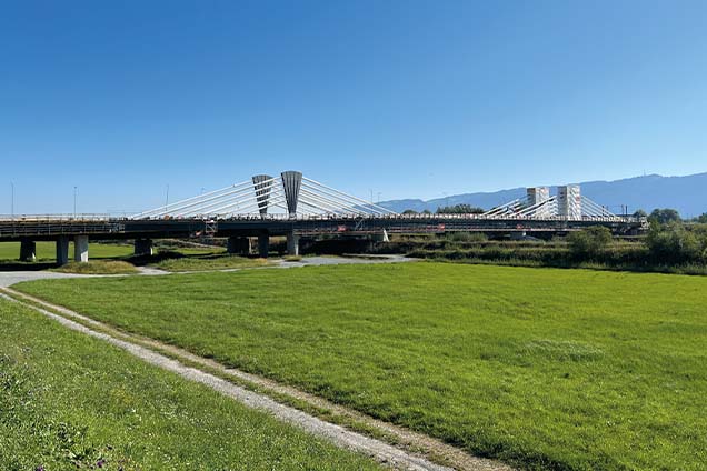 VSL detailed, supplied and managed the installation of the stay-cable system, including saddles in the steel towers, for a new extradosed bridge over the River Rhine in Austria, between Hard and Fussach. This was the first time VSL installed stay-cables and saddles into steel towers, as saddles are generally used in concrete towers. It was also the second time VSL supplied and installed its fire protection system along the entire free length of the stay-cables.