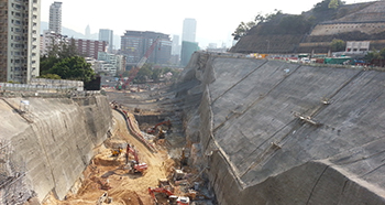 FT Laboratories, a VSL subsidiary that specialises in monitoring, performed surveying using Automatic Deformation Monitoring System and instrumentation work, including ground water level monitoring, slope movement monitoring and load cell monitoring of the tieback anchors, for the construction of a new station in the extension of the Kwun Tong railway line in Hong Kong’s MTR network.