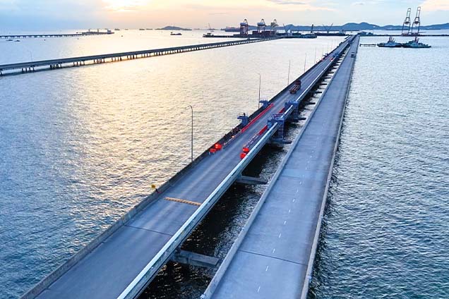 Kerry Siam Seaport (KSSP) in Chonburi, Thailand, faced infrastructure deterioration after more than three decades of continuous operation. VSL was enlisted to strengthen the concrete U-girders on the jetty using its external post-tensioning system to enhance the strength and durability of the structure. Despite challenging conditions, including space constraints and environmental factors, the modular design of VSL’s access platform, the system it uses to secure the platform against the effects of dynamic wave actions and strong winds, and the implementation of the efficient VSLoop® system all enabled the wide-ranging project to be completed ahead of schedule, enhancing the bridge’s durability and operational life-cycle.