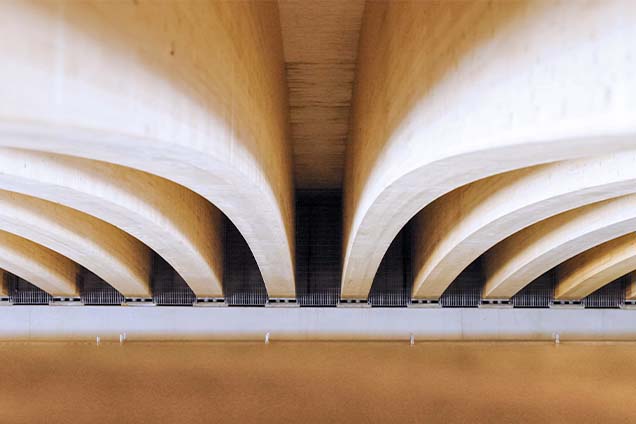 A wildlife crossing over the A1 highway in Switzerland was built using one of the world’s first post-tensioned timber bridges. VSL designed and installed the post-tensioning system for the 37 m main span, developing steel distribution plates with multiple anchorages to safely introduce high forces into timber beams. Prefabricated beams were partially prestressed off site, erected during night shifts, then stressed to final force, demonstrating the structural and serviceability benefits of post-tensioned timber.