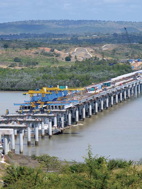 VSL Portugal played a significant role in building two bridges and a viaduct in the Mombasa Port area of Kenya, a vital gateway to East Africa. Upon completion, these were the longest bridges in the region. The proactive role played by VSL teams in proposing and implementing alternative construction methods, coupled with their active involvement in enhancing productivity, were central to the successful realisation of this complex infrastructure project and cut nearly two months from the construction programme, while still maintaining high-quality standards.