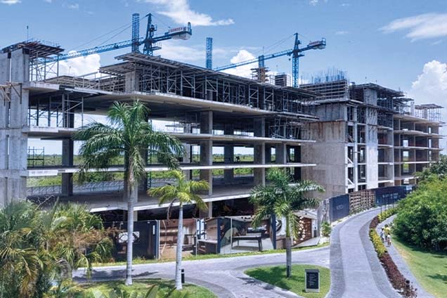 The Villas Grand Hotel project expands the Moon Palace resort in Cancún with a six-storey, 15,300 m² building. VSL México delivered the full design of post-tensioned slabs using the BONTECH bonded monostrand system, including material supply, assembly drawings, and site support. The flat-slab solution with drop panels reduced construction time, optimised formwork cycles, and lowered steel and concrete consumption.